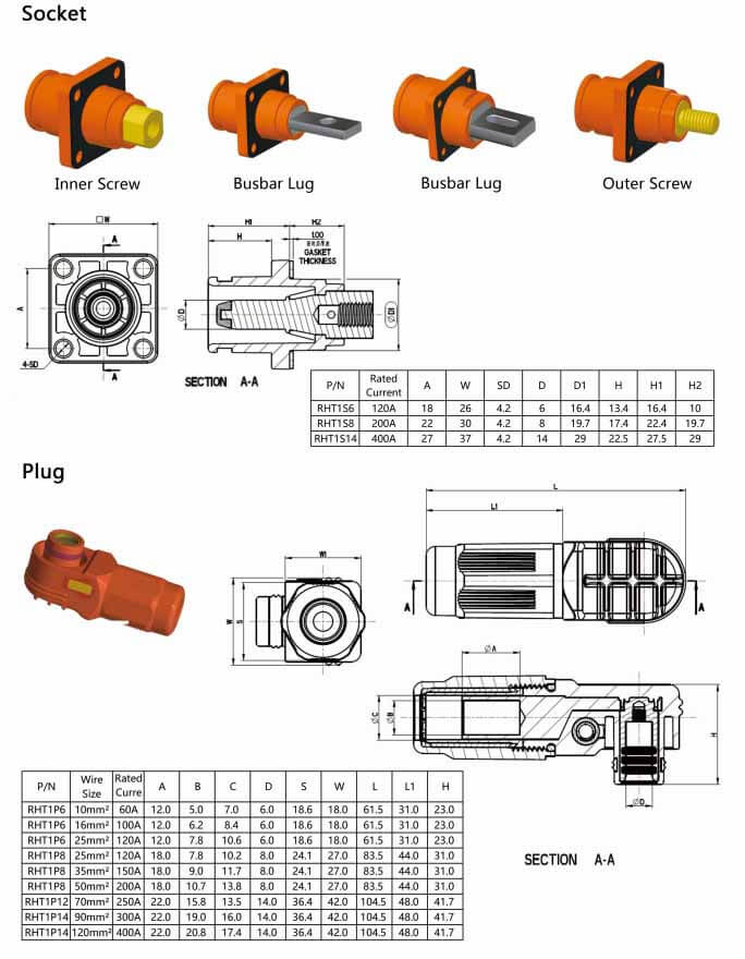 標(biāo)簽:儲(chǔ)能連接器,彎式,插頭和插座,6mm,紅色,IP65,100A,帶孔銅牌