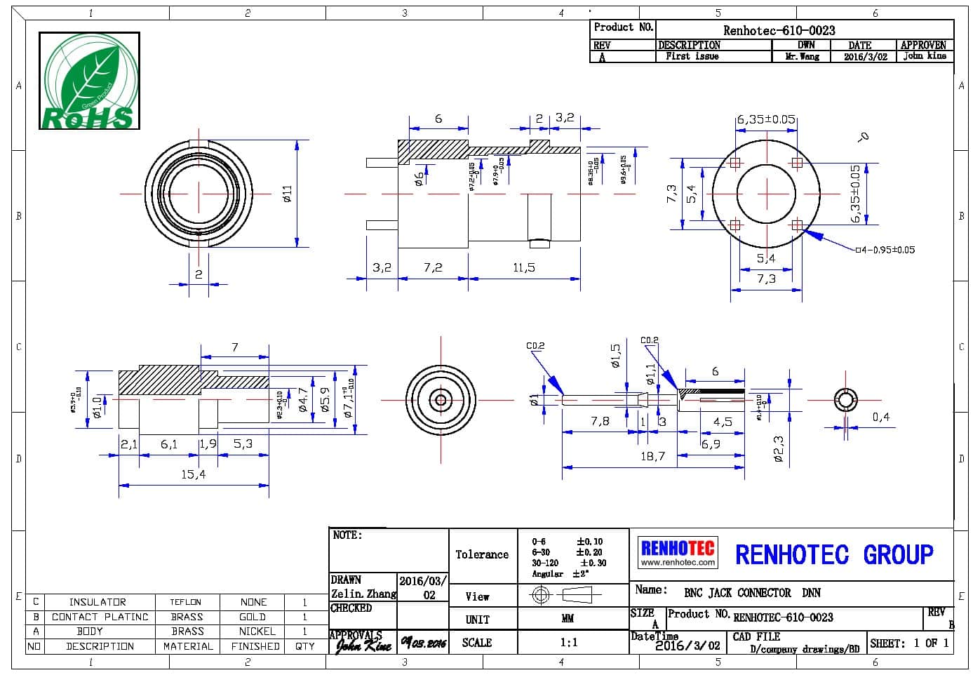 BNC連接器 5引腳直式射頻同軸 PCB板端