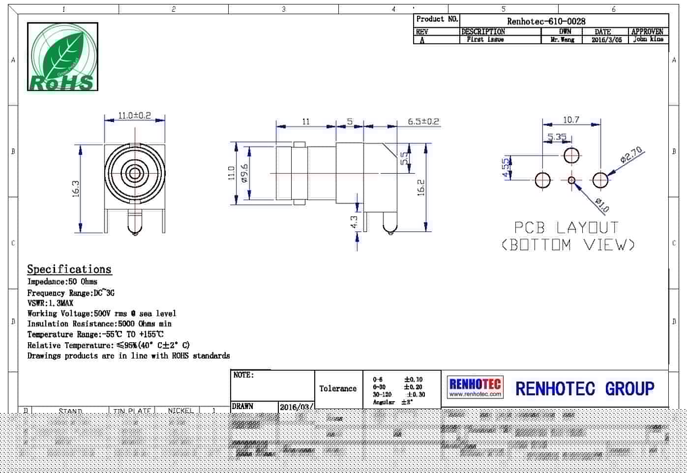 頻率范圍 50 ohm 為 0~4 GHz