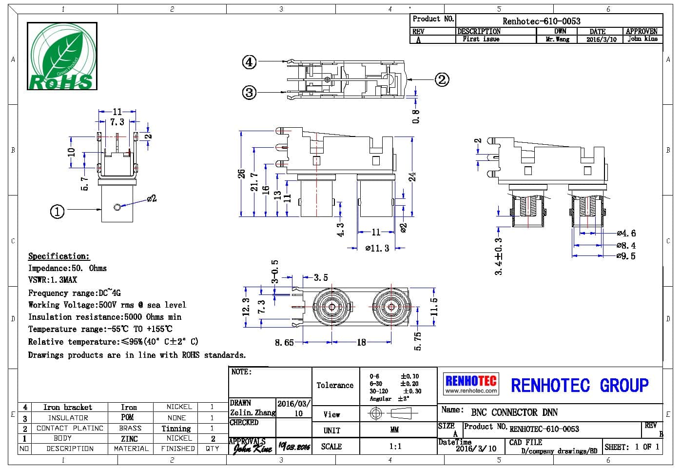 | 頻率范圍 | 50 ohm 為 0~4 GHz |