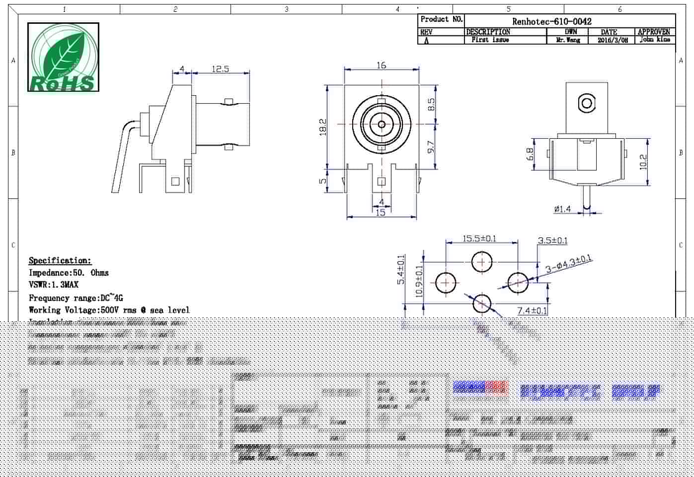 | 頻率范圍 | 50 ohm 為 0~4 GHz |