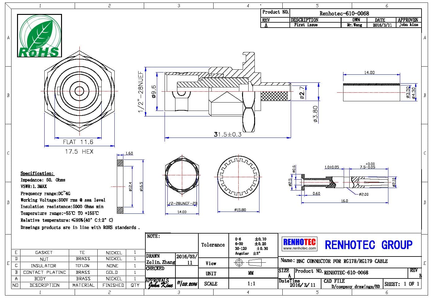 | 阻抗 | 50 ohm |